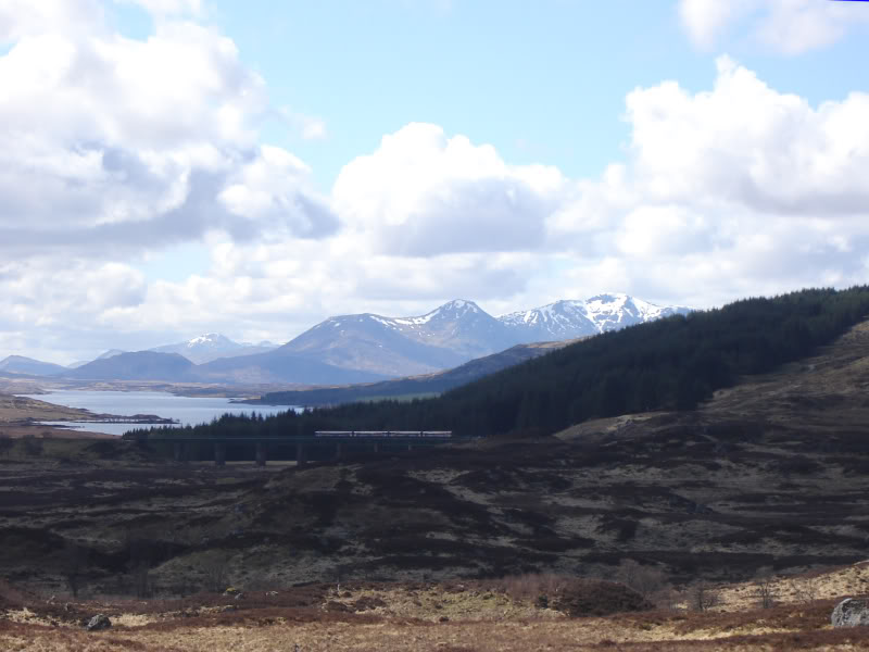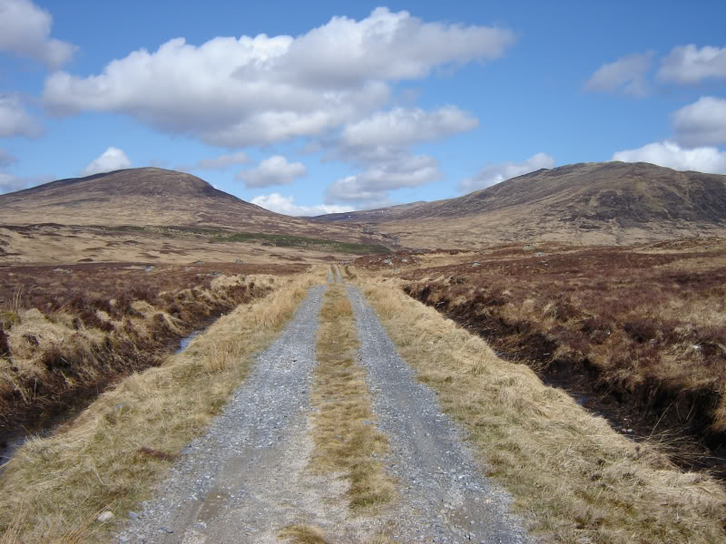 A good track is followed for the first 3km as far as the bridge over the Allt Eigheach. The railway line near Rannoch Station is visible from the track.