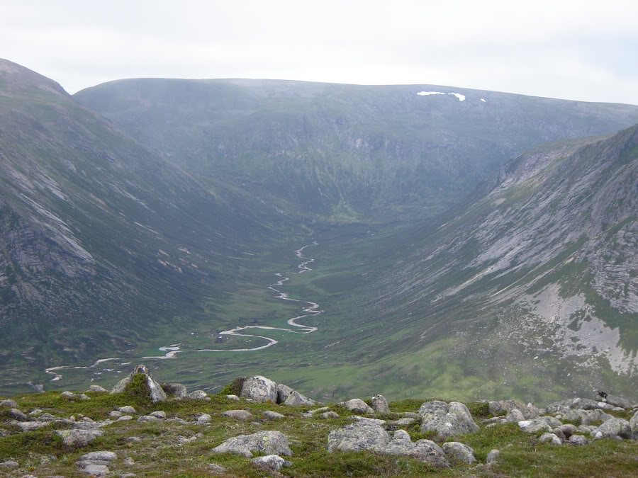 As we gained height the cloud started lifting, rewarding us with nice views. The higher tops of Ben Macdui, Cairn Toul and Angel’s Peak were still capped in cloud.