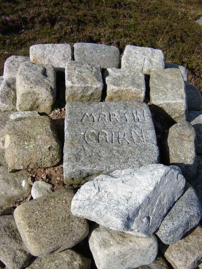 At the summit there is a trig point, a large cairn and a smaller cairn with a block on top stating "Martin Cairn". Not sure of the history behind this.