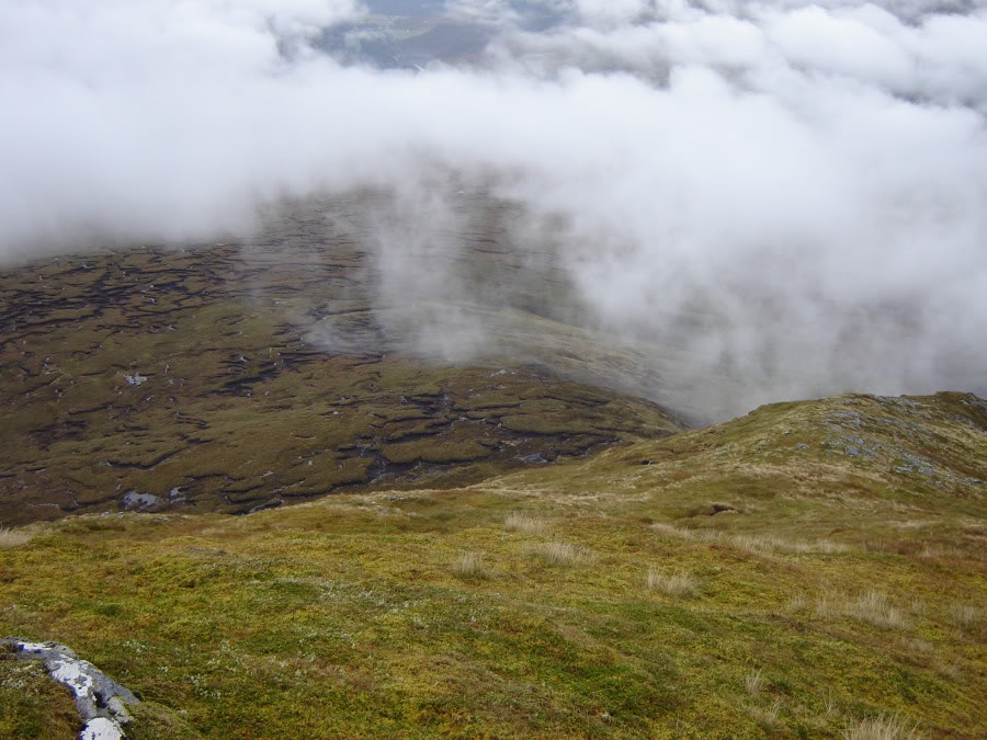 The initial descent from Sgurr a'Mhuilinn was quite steep, followed by a flat expanse of peat hags.