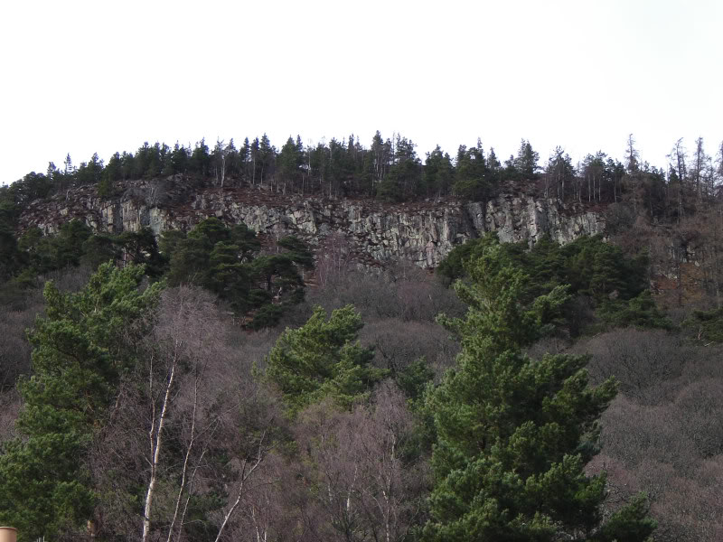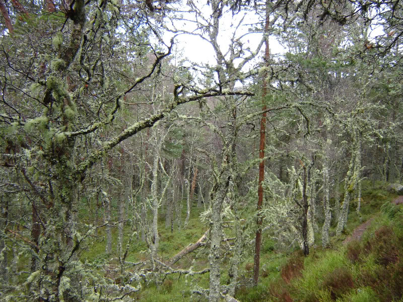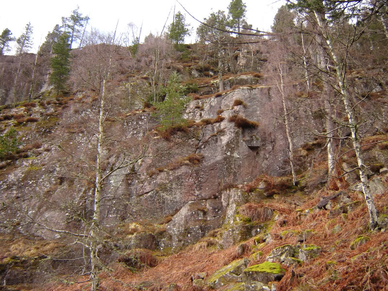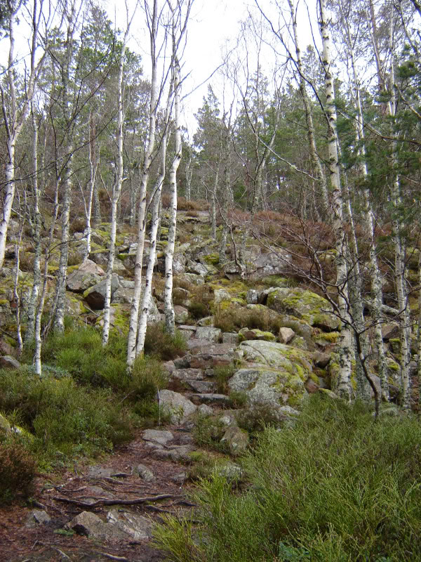 From the summit, we continued the circular walk descending initially towards the Pass of Ballater crag, which was just visible through the trees, and then skirting below the main crag of Craigendarroch.
