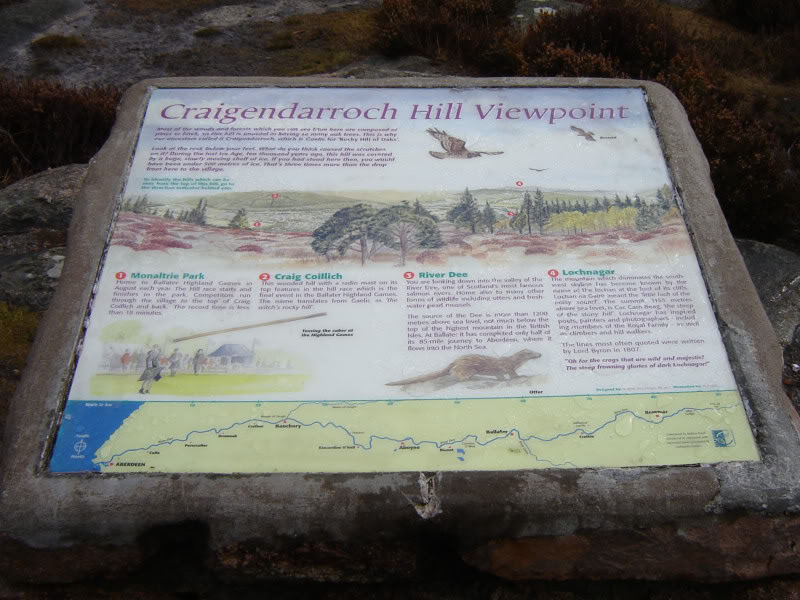 Just below the summit is a large viewpoint cairn and sign. The views of Ballater were terrific. I will however be coming back to do this hill again on a good clear day to see the surrounding hills.