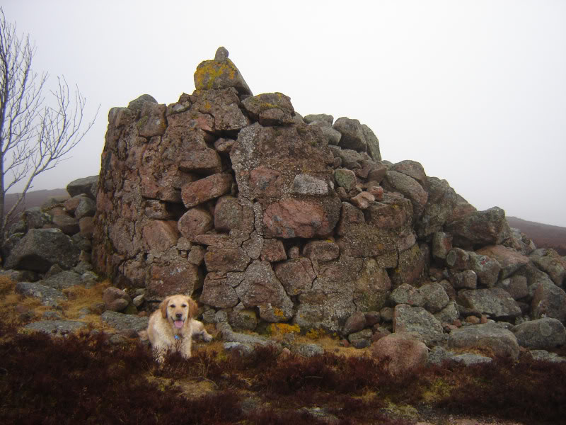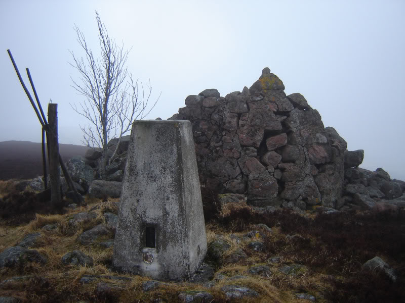 The large cairn at the summit would be difficult to miss, even in mist like today.