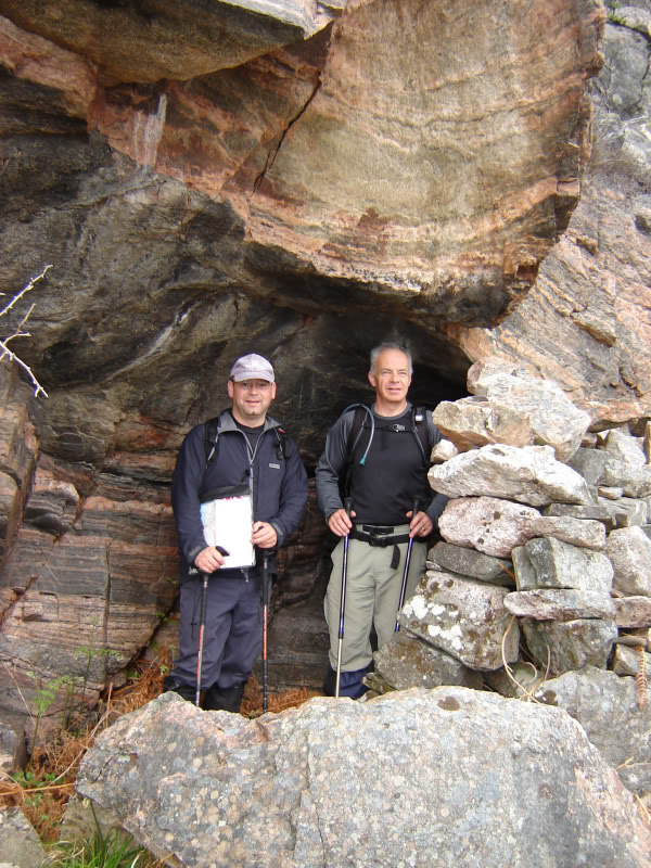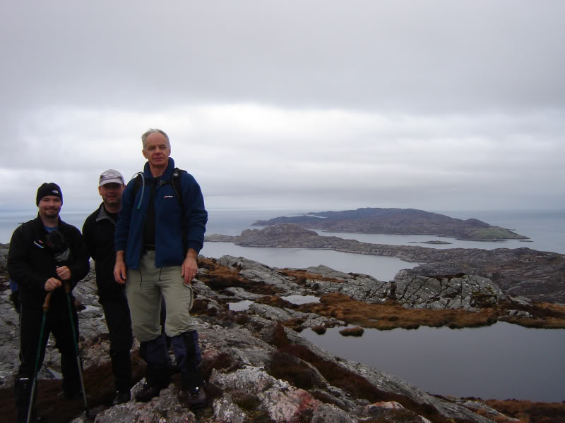At the summit, we met several other hillwalkers. In the mist, we weren't sure if the trig point or the rocky lump along from it was highest, so we visited both.