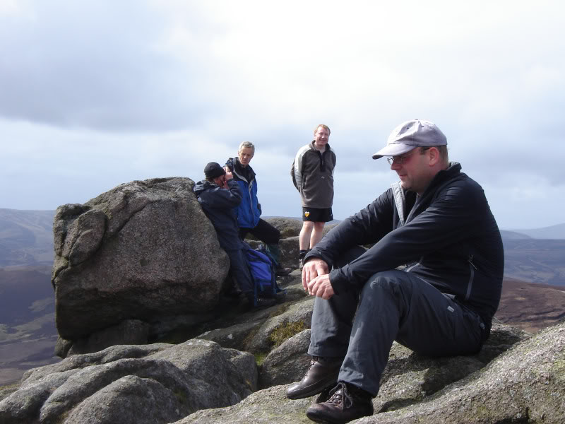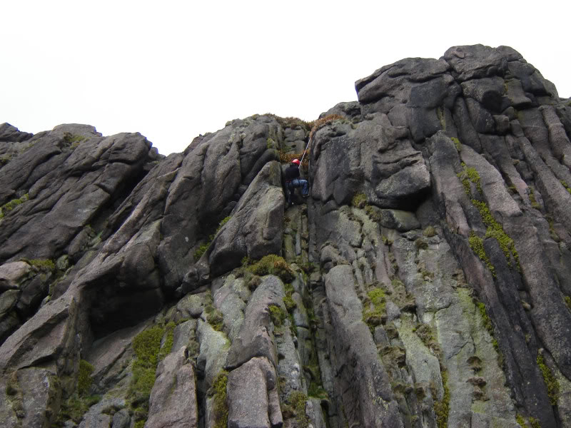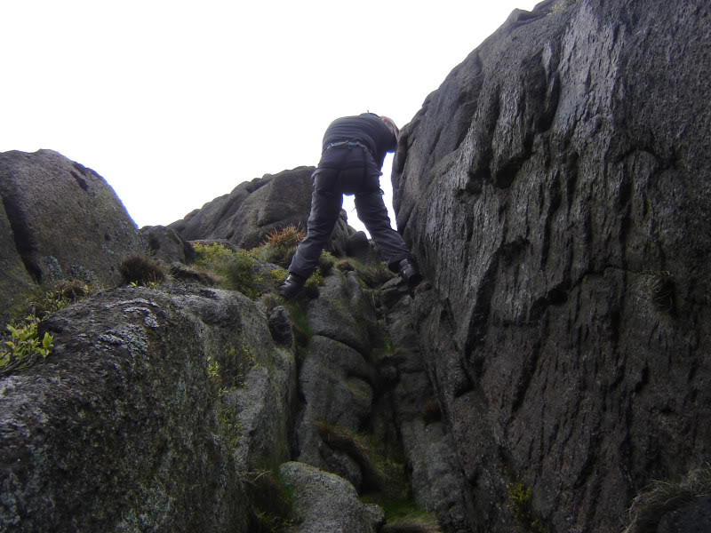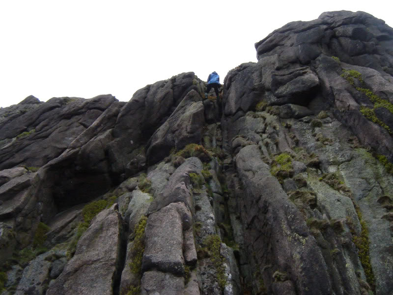 I then considered setting up a top rope to allow members to undertake an easy climb, however, it started to rain and hail so after some discussion we opted to descend Clachnaben and ascend Kerloch (a neighbouring Marilyn).