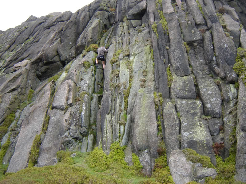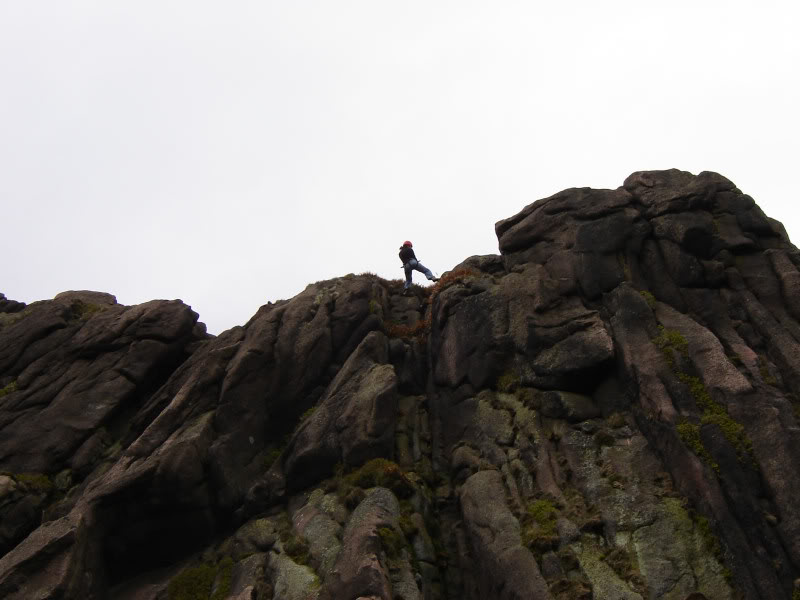 On reaching the top, I set up anchors near the highest point on the tor. I then lowered off Club members one by one (similar to abseil but with me in control of descent).