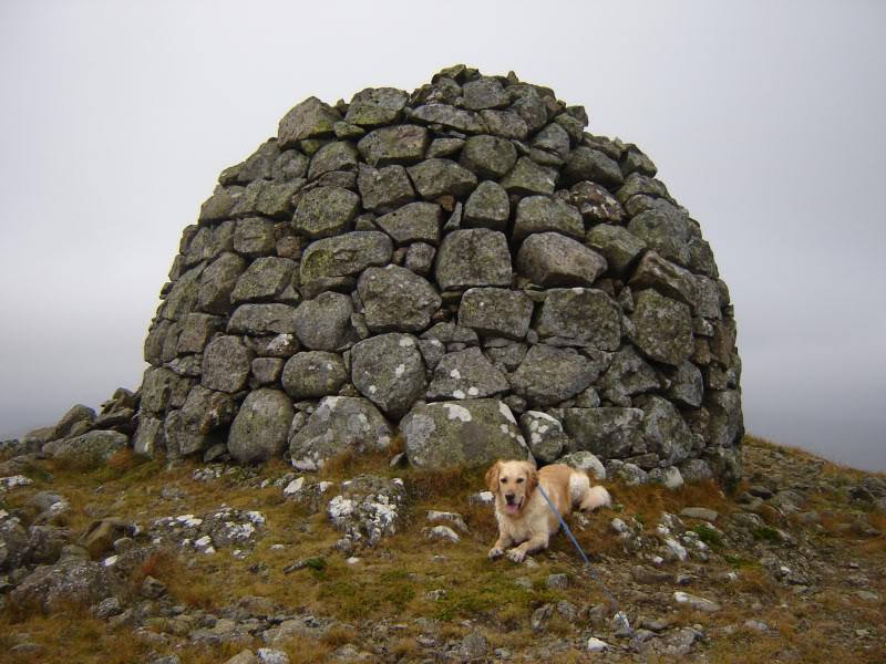 There are a couple of small outcrops during the ascent, which were a bit wet and needed hands on rock. Beinn managed up ok, thanks to his in-built crampons. I kicked a stone but thankfully Beinn decided not to chase it. The stone bounced down at least 100m before stopping.