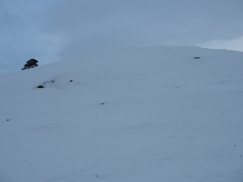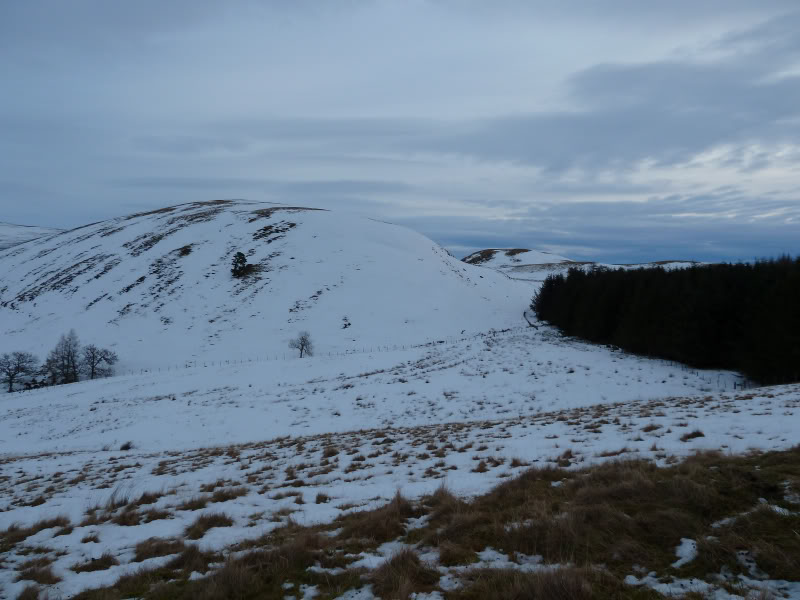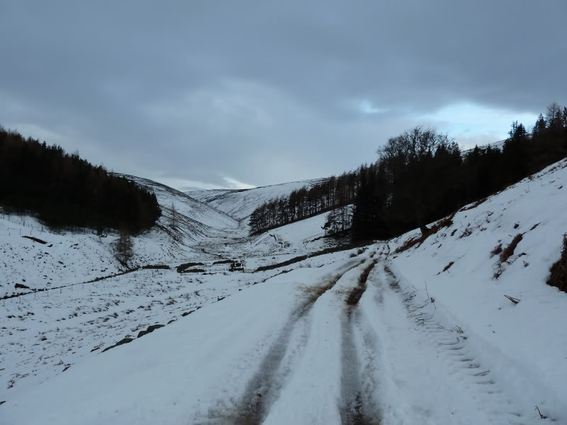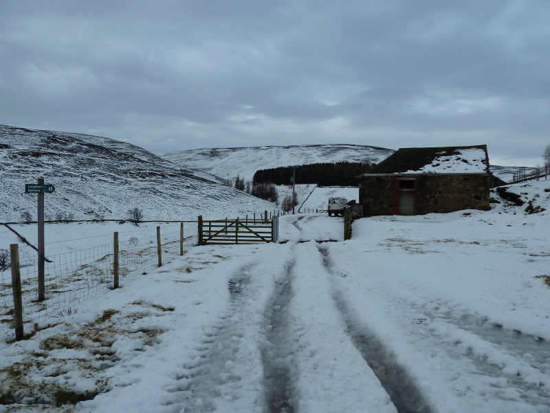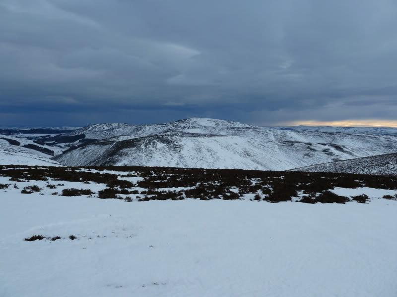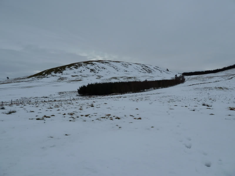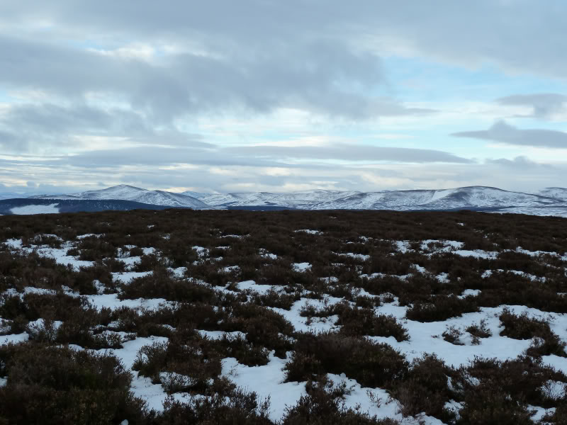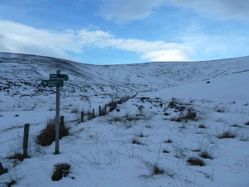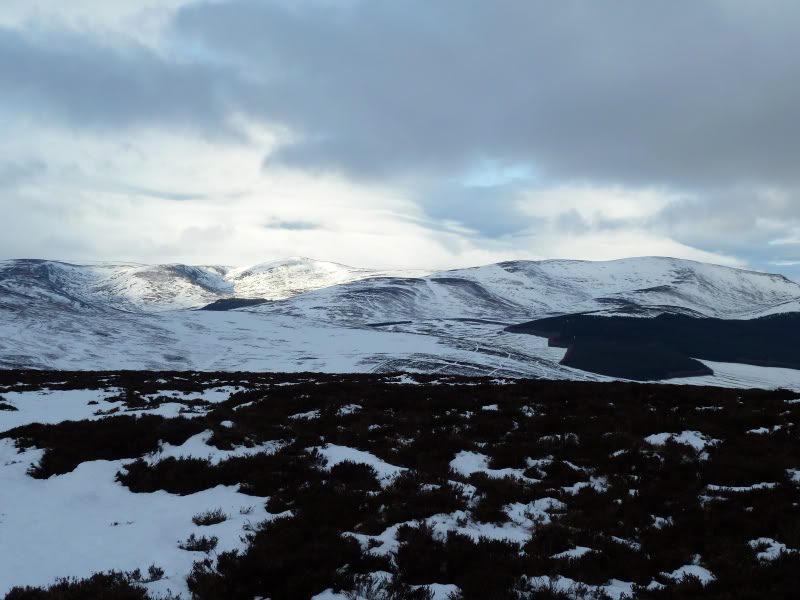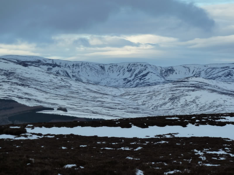 The advantage to starting from Wester Lednathie is that there is a land rover track most of the way to the summit of Corwharn. Was quite lucky today in that a vehicle had driven along much of the track, compacting the snow