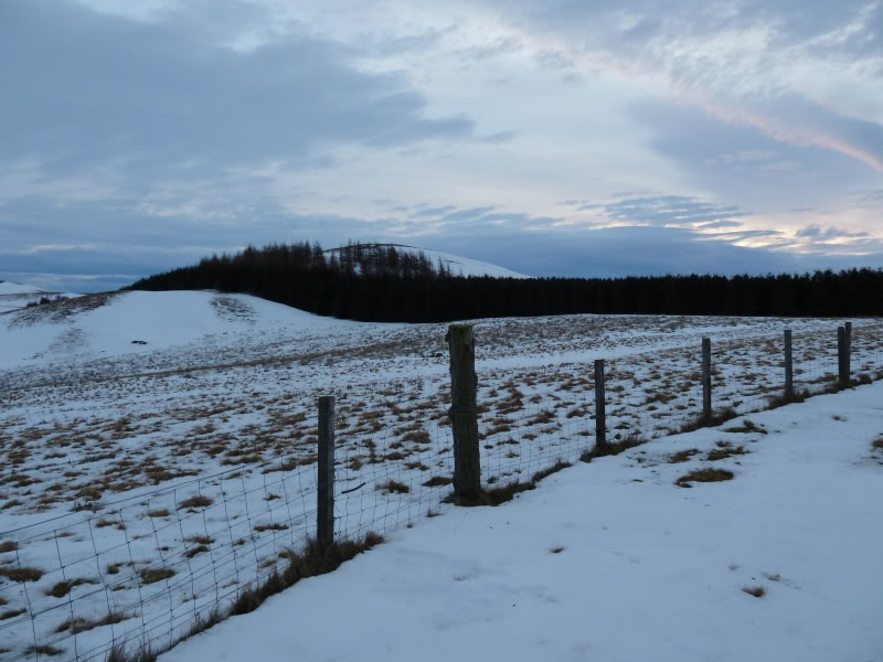 From the summit of Mile Hill, I descended towards the small wood near Gairlaw and then followed the track back towards Hilton.