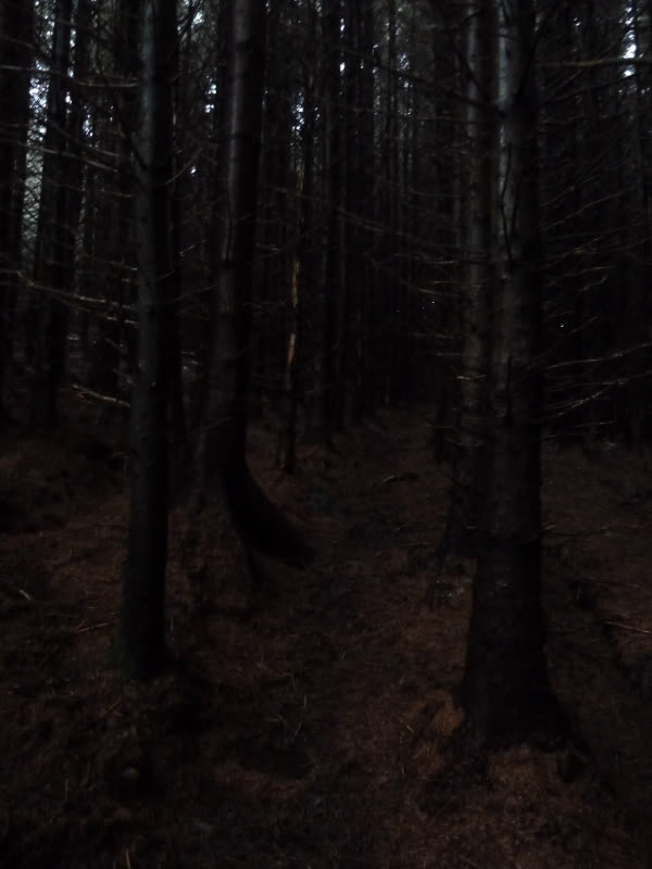 I'm not sure if the route I took was the normal route up the hill, as the firebreak stopped short of the end of the forest. The final 100m was through a much darker, more enclosed section of forest. Some of the trees did have orange ribbons tied to them (I assume orienteering markers?)