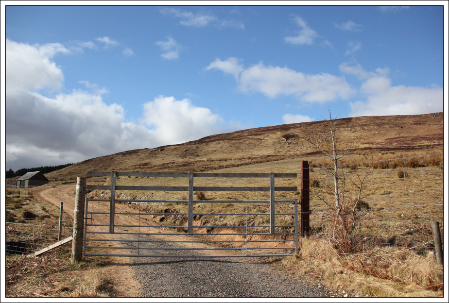 A couple of minutes after setting off, on looking back I could see a tractor pull up to the gate and the farmer locked the gate with a large chain and padlock. I continued on hoping that I would find a way to get Beinn back to the other side of the fence as there was no chance of lifting him over the high gate.