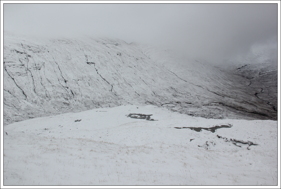 The most enjoyable part of the day was the ascent of Glas Bheinn. I was quite surprised to be walking up through 2-3 inches of fresh snow as only five days previous I ascended two Munros with less snow.