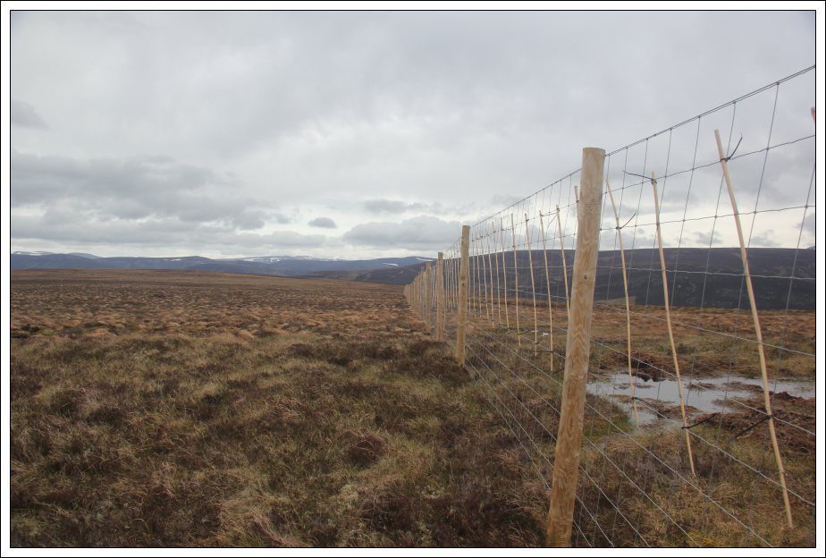 Beyond Sgor Dubh, we followed a new fence for a short distance before crossing some rough ground leading to Carn an 'lc Duibhe.