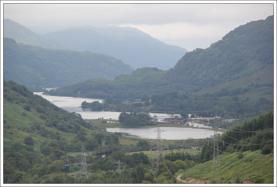 The view towards Loch Lomond, as seen during the ascent, is somewhat spoilt by the line of pylons and power station.