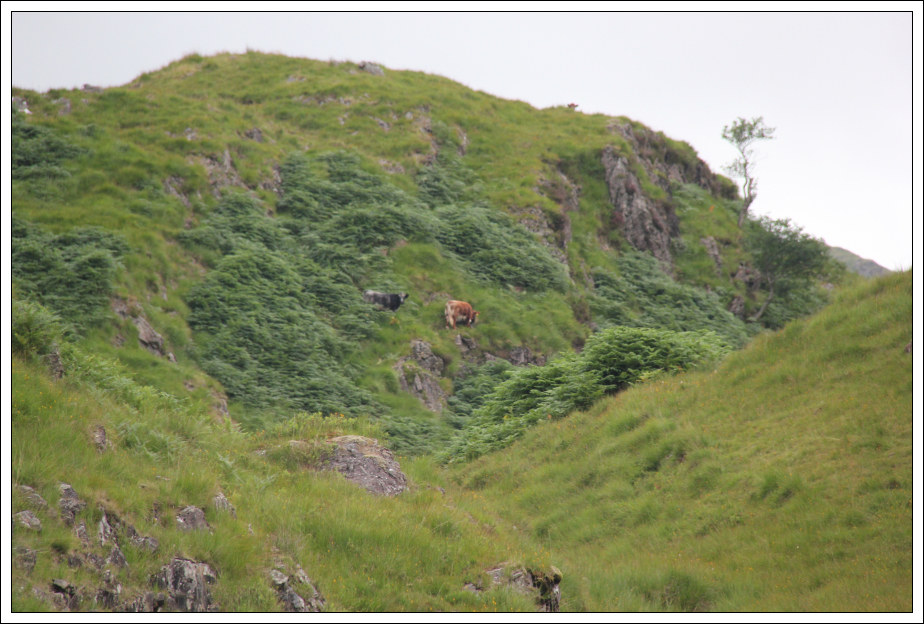 As I progressed along the track, several fresh-looking cowpats reminded me of passing cattle on my previous visit. However, today the cattle were well away from the track and seemed to be undertaking a bit of mountaineering!