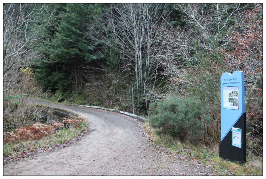 From the Youth Hostel car park, I walked circa 50m along the A82 before heading up to join the Great Glen Cycle Route track.