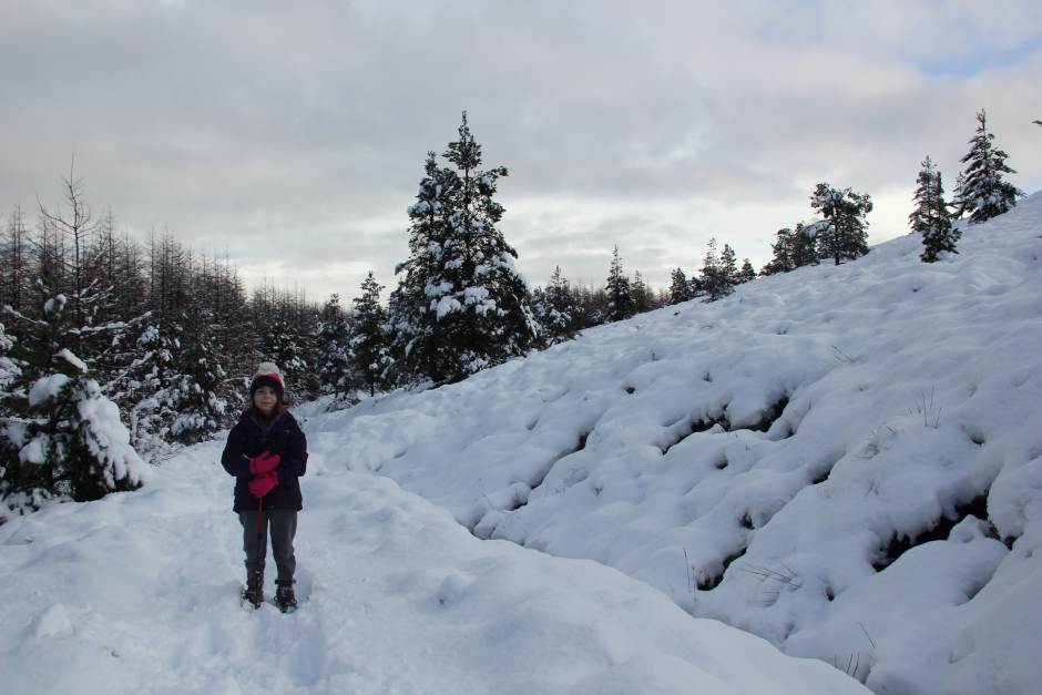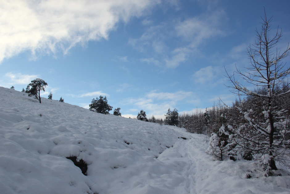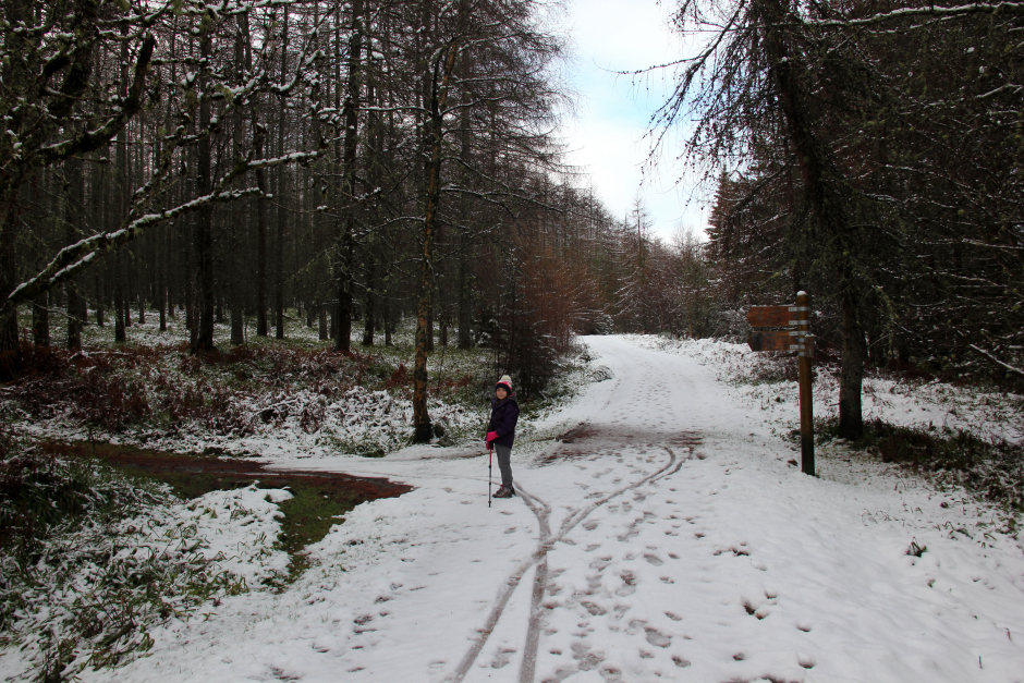 The walk up through the trees didn't take long albeit we had to take care on slippery tree roots which had a covering of slush.