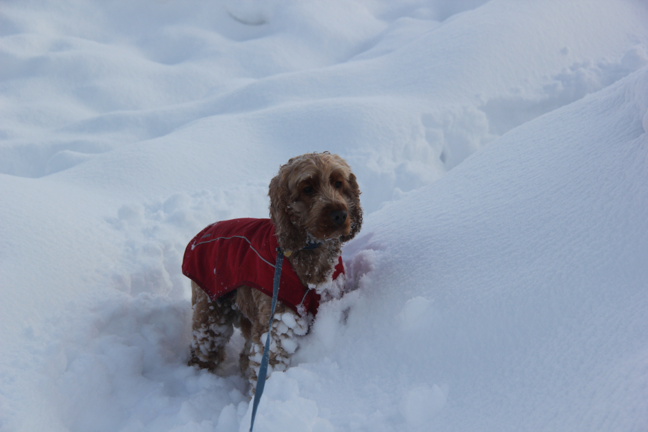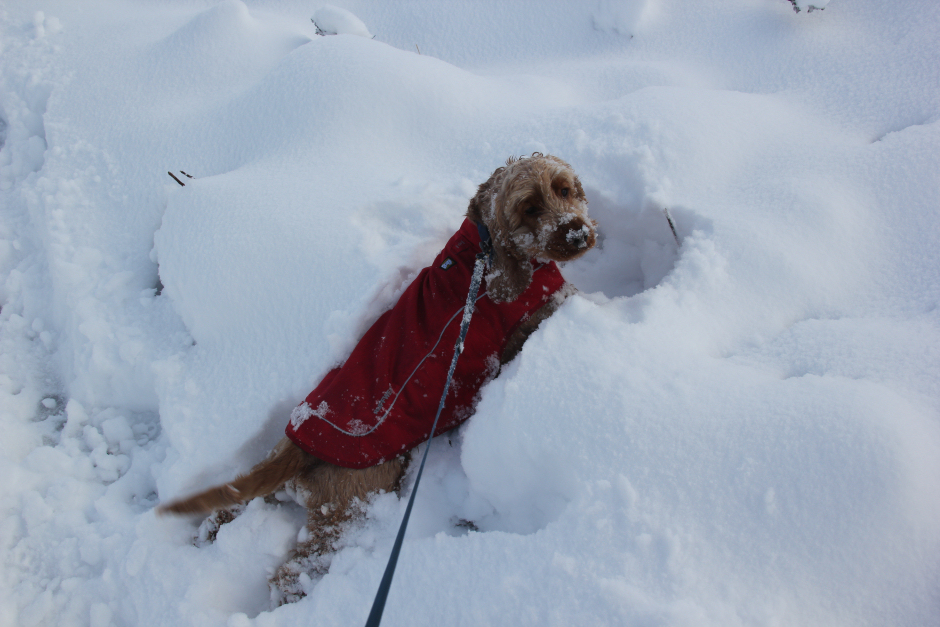 Cuillin really enjoyed bunny-hopping around in the snow. The snow was often deeper than the length of his legs.