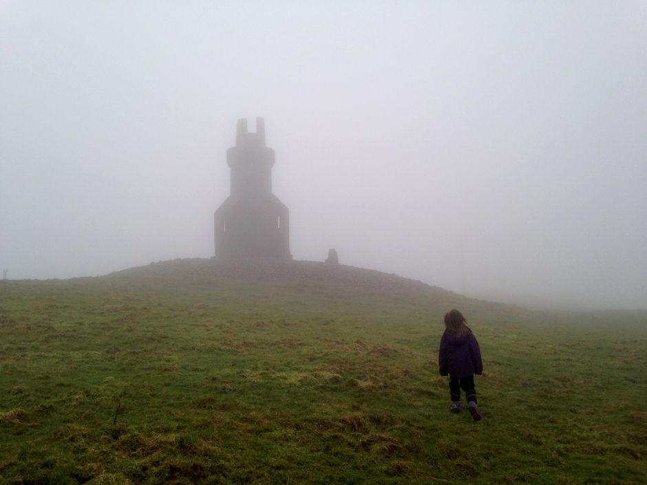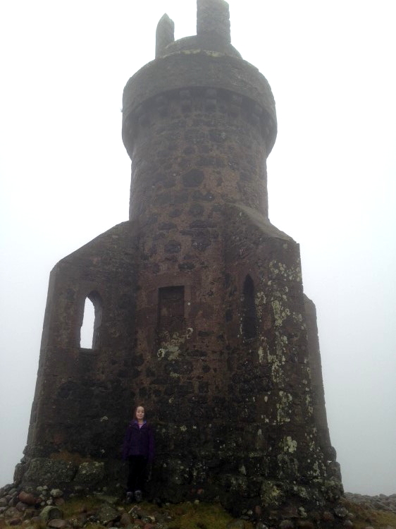 Approaching Johnston Tower at the summit of Hill of Garvock:
