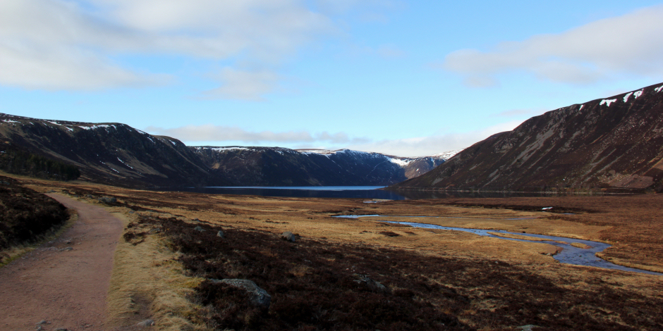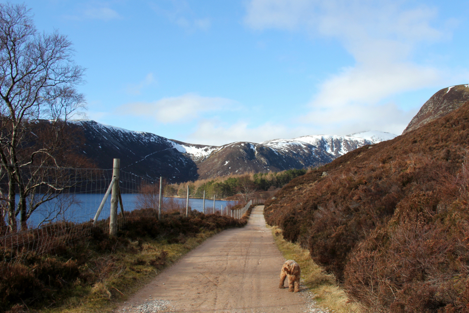 On arriving at the Spittal of Glenmuick, I paid the £3 car parking charge, got suited and booted and set off towards Loch Muick. It was a beautiful morning