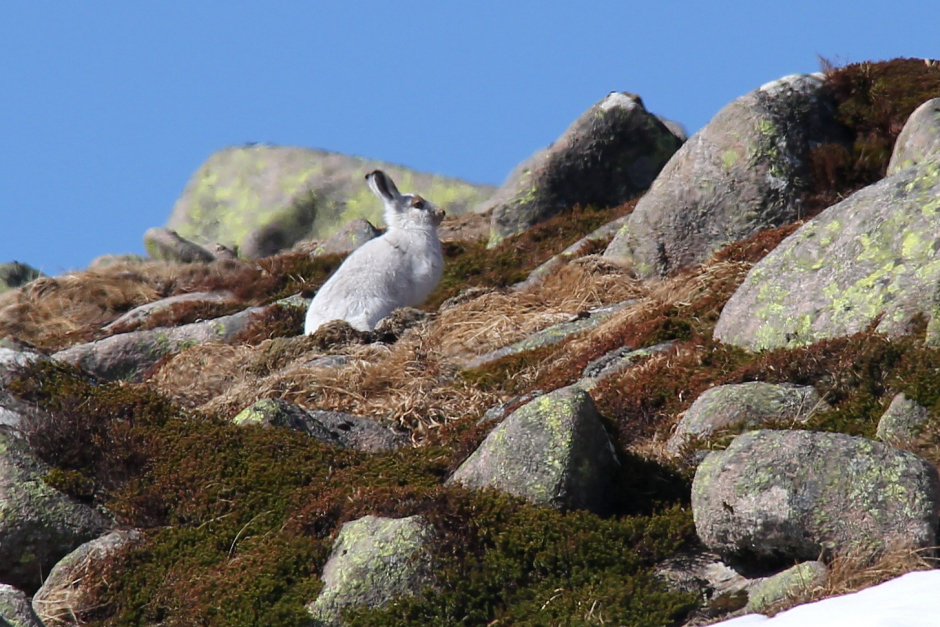 During the ascent of Lochnagar, we passed three Mountain Hare. Cuillin was keen to give chase but much to his disappointment, I had him on his lead.