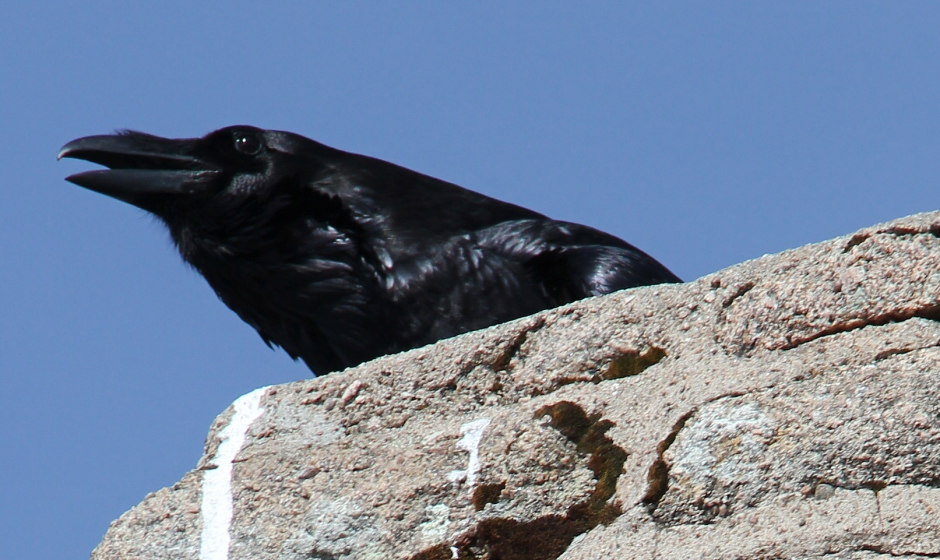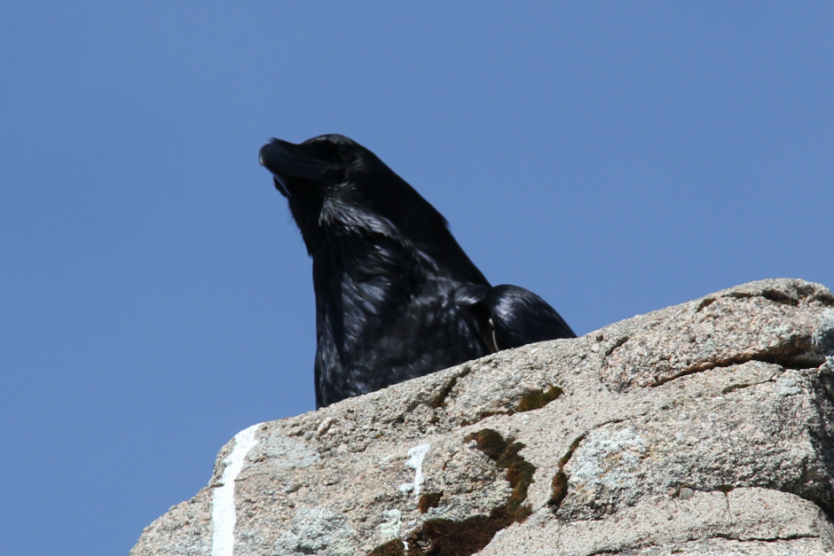 While having a bite to eat just below the summit, a large Raven landed on the trig point. I took around fifteen photos of it before it decided to fly off.