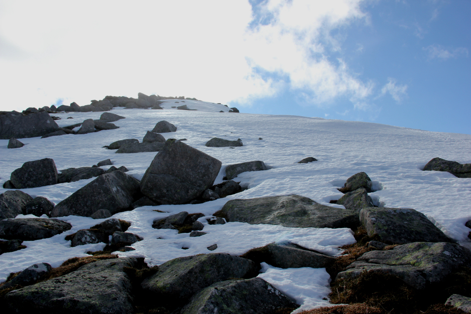 There were a couple of short sections of boulderfield to negotiate to reach the summit of Little Pap. This was however nothing compared with the much larger section of boulderfield to come on ascending Cuidhe Crom.