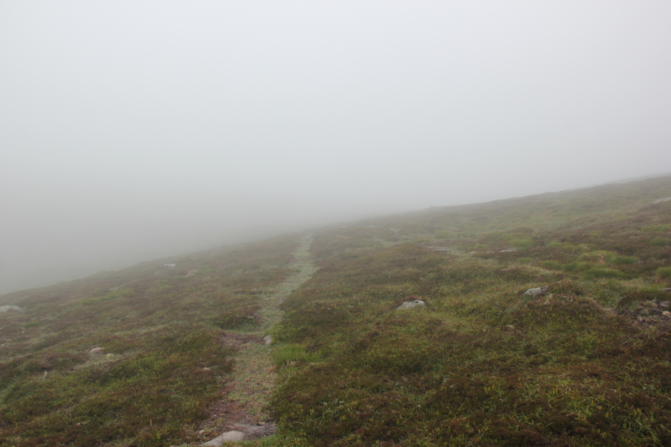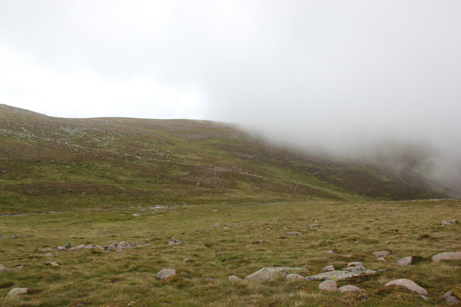 At a height of circa 1000m, we left the Glas-allt path to head towards the White Mounth tops. The terrain was fairly pleasant; mostly nice short grass.