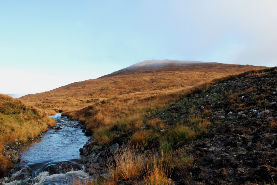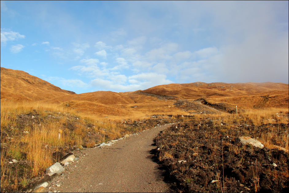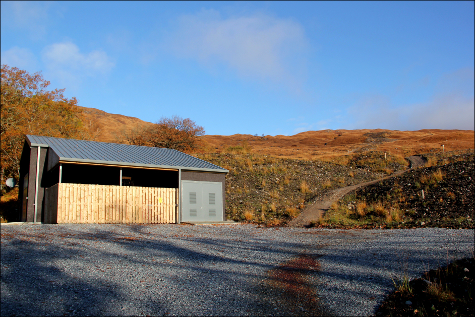 On reaching the Allt Arcabhi, I parked just off the road opposite a new hydro scheme building. Once suited and booted, I commenced my ascent of the new hydro scheme track leading towards Loch Blair.
