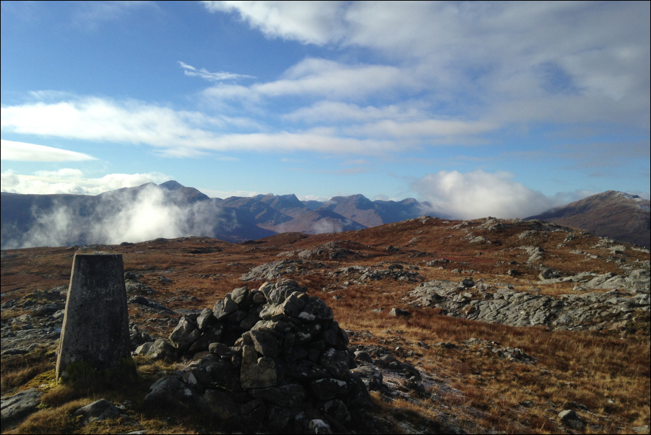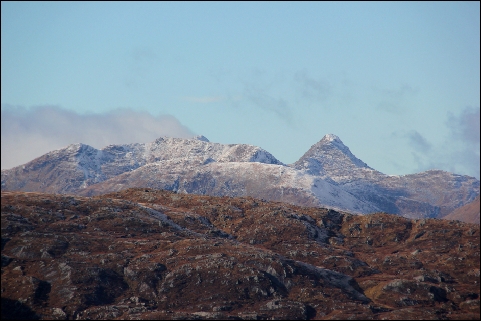On seeing a new group of hills come into view, the pointy one was easily recognisable, Sgurr na Ciche.