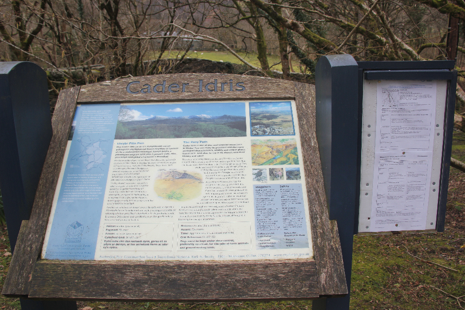 I parked in the Cadair Idris car park. The car park information board suggests 5 hours to ascend Cadair Idris and back. My Snowdonia guidebook suggests 4 hours to ascend Cadair Idris and back. Probably intentionally, the fee for parking is £2.50 for up to four hours and £5 for the day. Thus most will likely pay the higher rate when ascending Cadair Idris in case it takes them more than four hours. I decided to pay the lower rate and ensure I was up and back within four hours. I didn't think this would be a problem as I am generally faster than guidebook times.