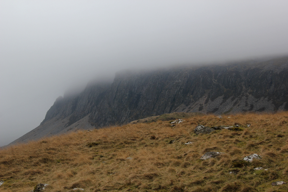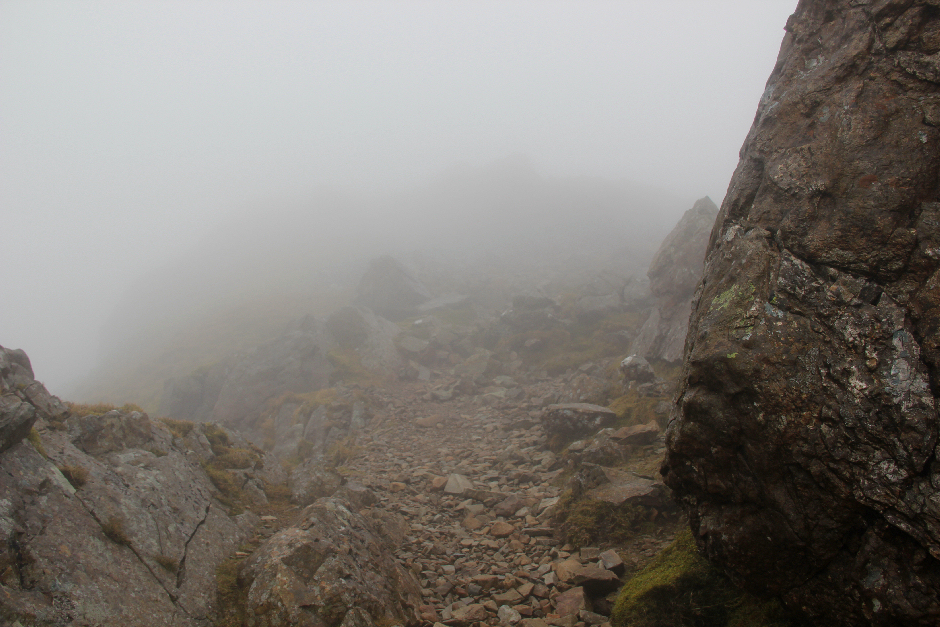 I followed the rim of the coire towards the summit. Visibilty was now really poor.