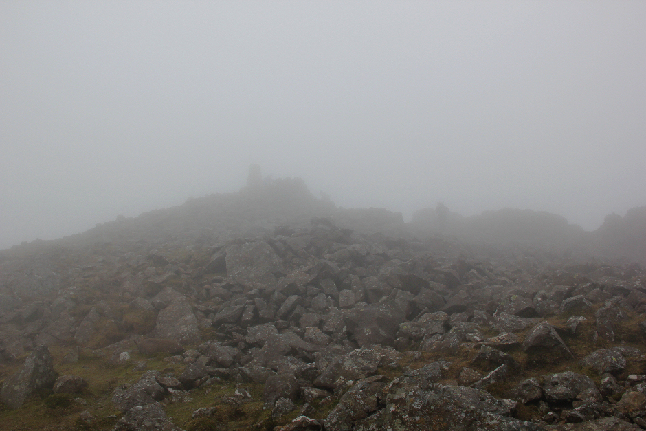 On reaching the summit, I stopped long enough to take a photo and then returned via the same route. I wasn't hanging around because there were no views and I had to get back to the car park within four hours.