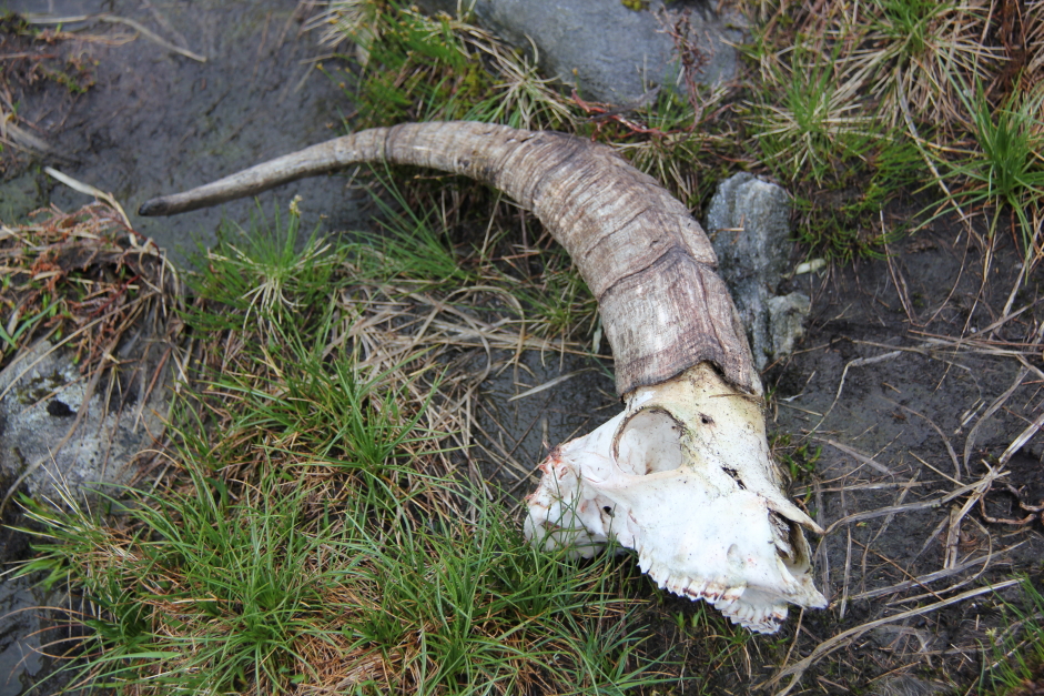 As I made my way between the 614m top and the next top I came across the remains of a mountain goat.