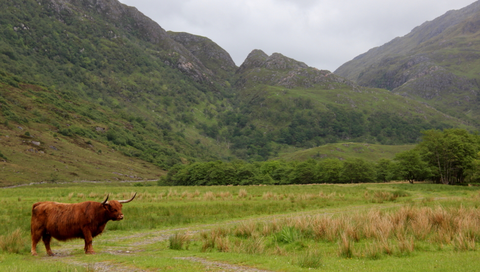 After crossing the weak bridge, I took several photos of Highland cattle which were standing just beyond the bridge. They are docile beasts and generally friendly compared with other cattle breeds.