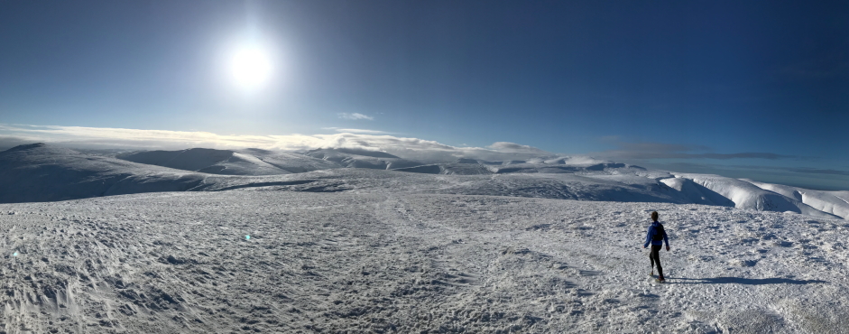 While taking a panoramic shot from atop the summit cairn, a fell runner