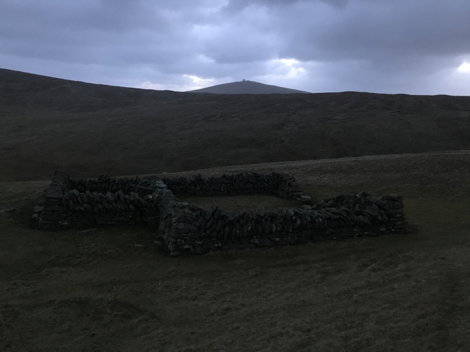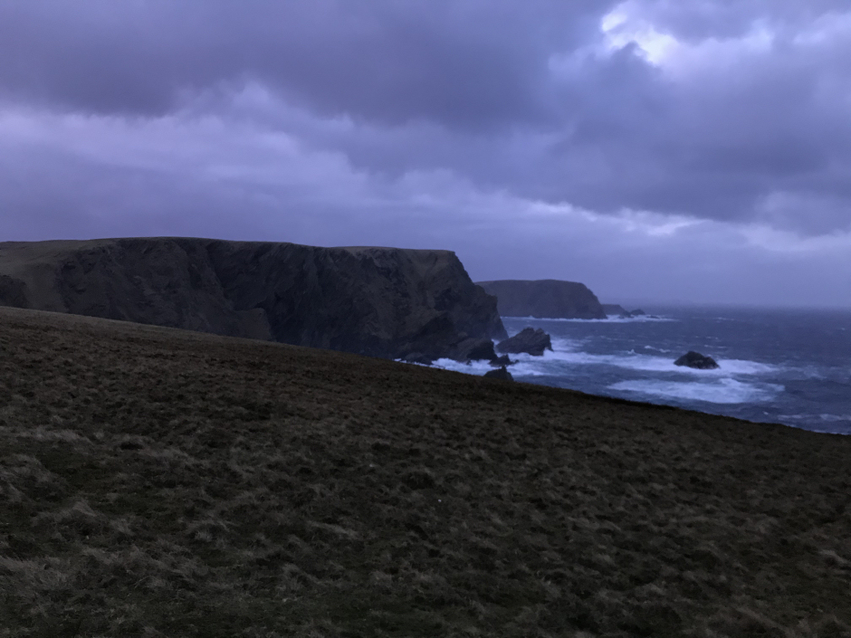 On reaching the summit, there was no sunrise just ongoing Shetland