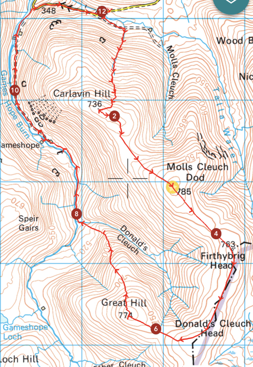 From Molls Cleuch Dod I progressed towards Firthybrig Head then Donald's