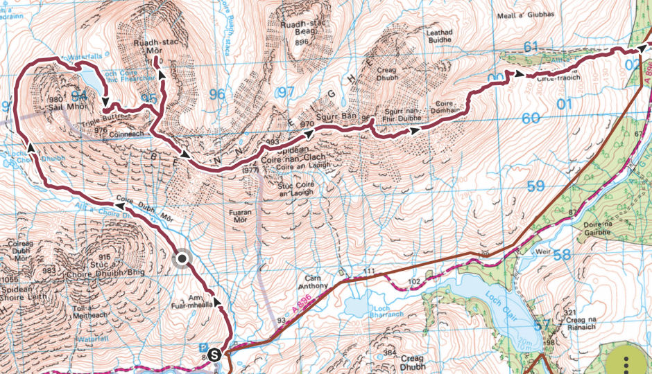 Having ascended the Munro Tops Sail Mhor and Coinneach Mhor previously, our