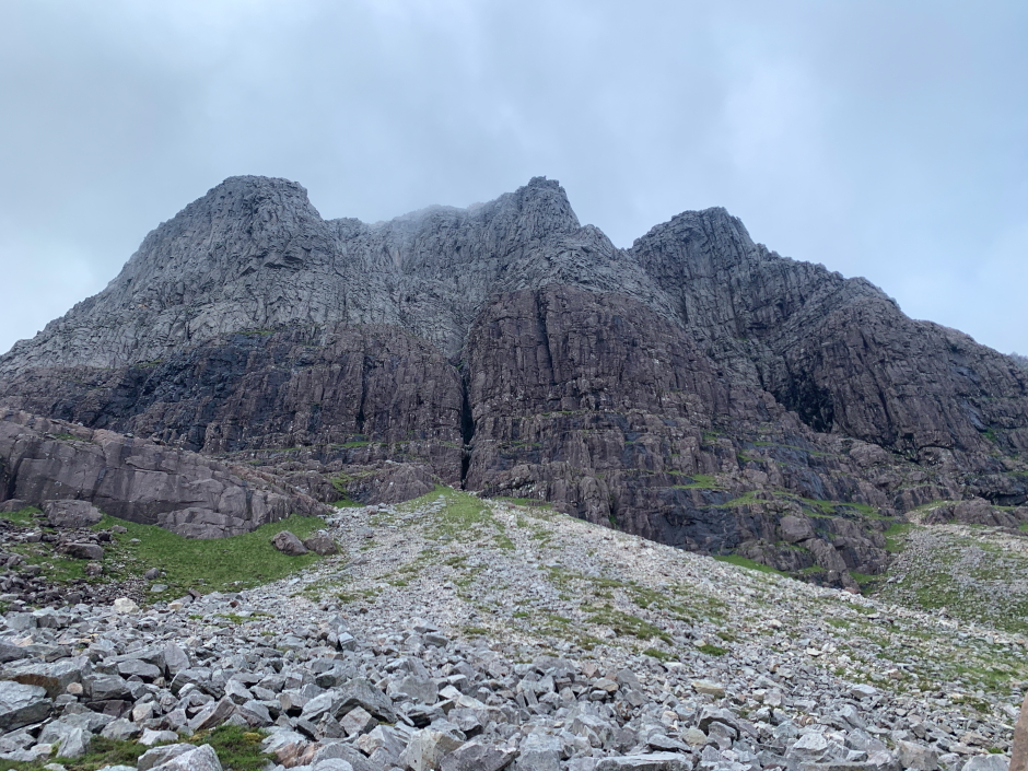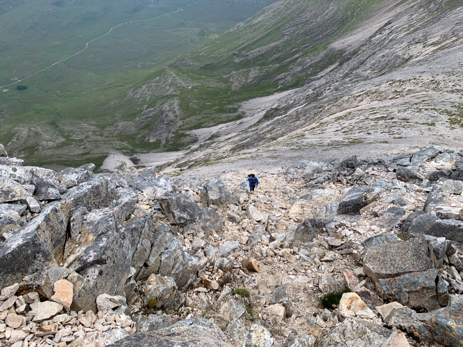 Sgurr nan Fhir Duibhe via a steep zig-zagging path down the scree which
