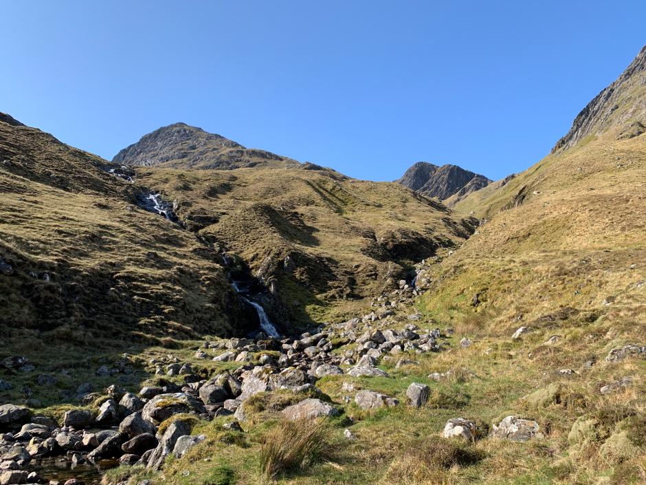 waterfall and then crossed the allt in the coire above. On this occasion,