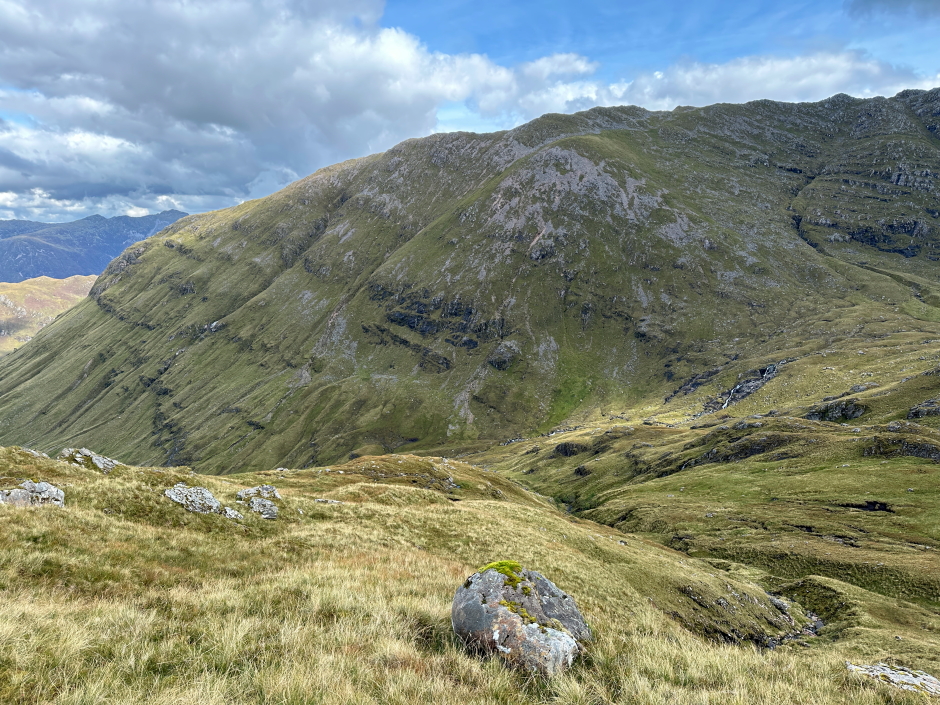 descend via steep grassy slopes into Coire Uaine to hopefully pick-up the