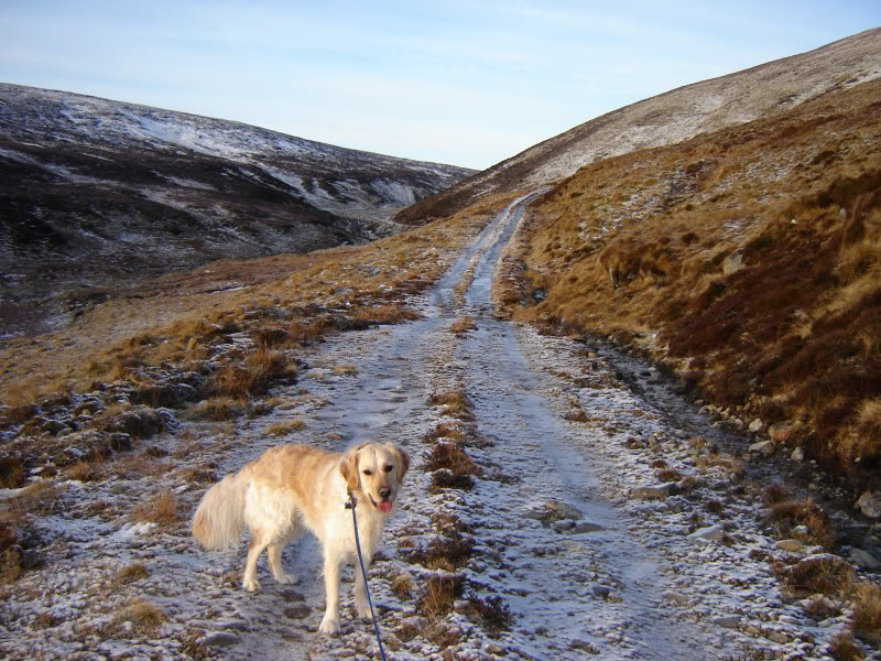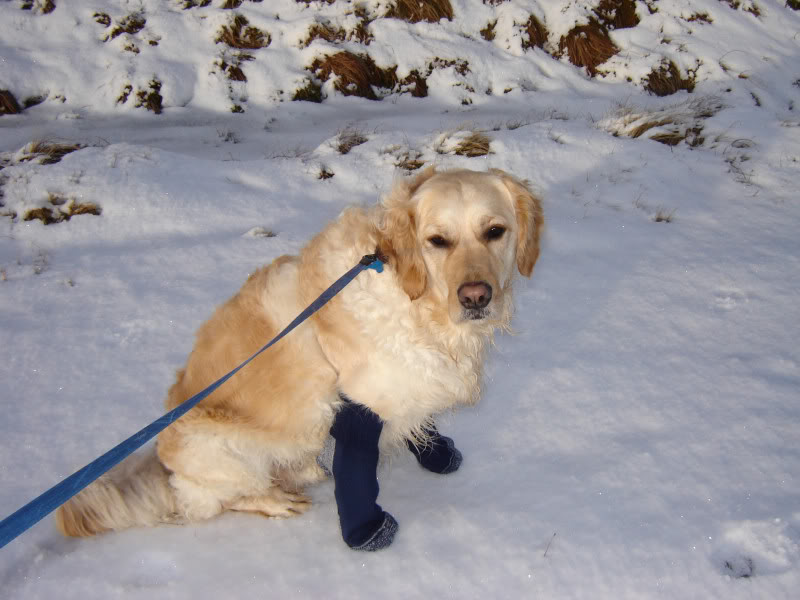 Only thing I could think of was to take off my socks and put them on Beinn - tying them on with a shoelace over his back! This did the trick fine but left me with very sore feet by the time I got back (barefoot inside my boots).