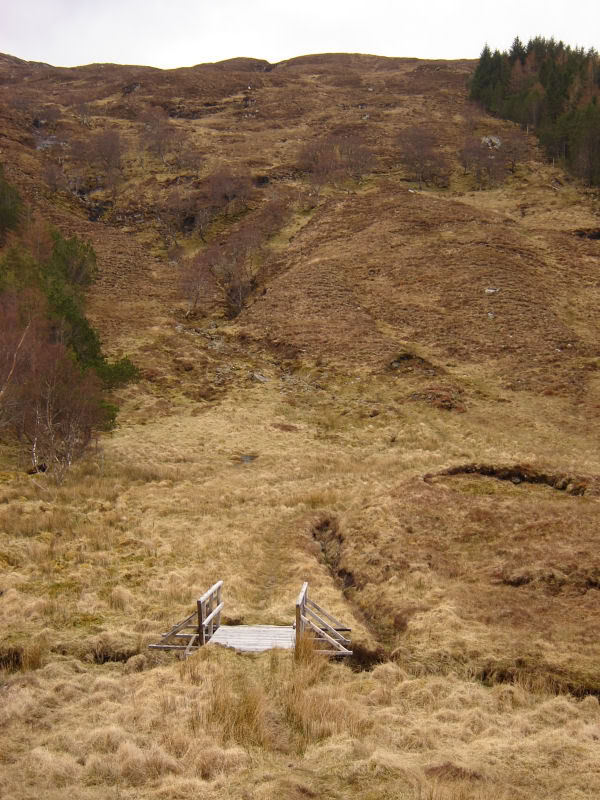 Crossed the small wooden bridge over the Allt Ceann Locha and immediately began the ascent via the stalker’s path.