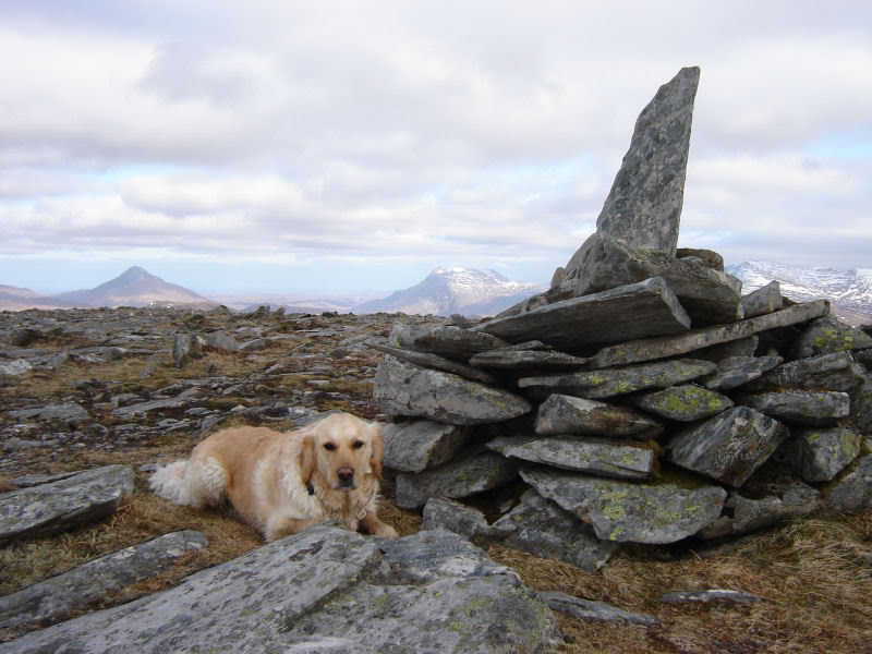 Beinn at summit of Beinn Leoid (with Quinag in background):