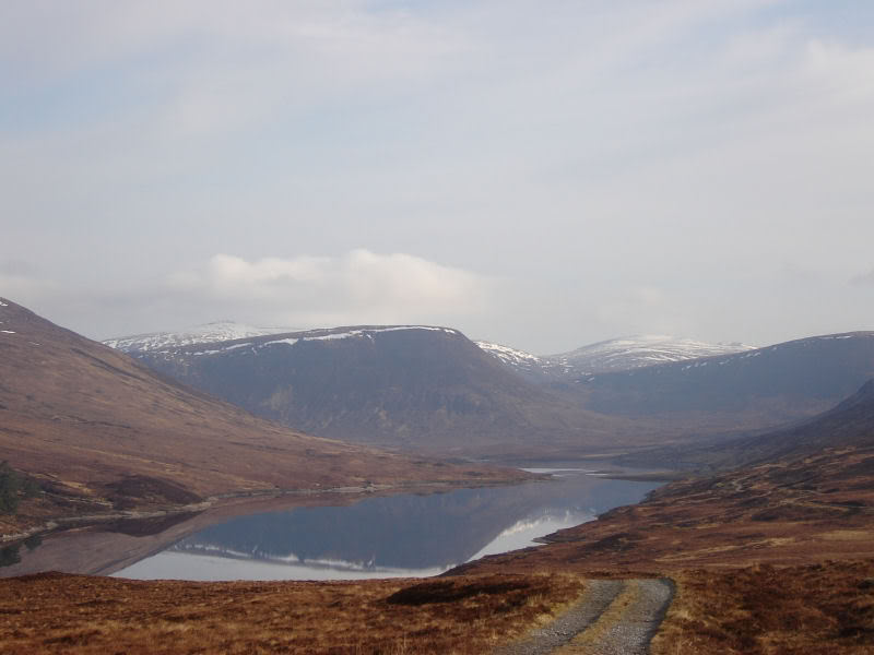 On reaching a weir and bridge we left the tarmac road continuing along rough land-rover track towards the start of Loch Vaich.