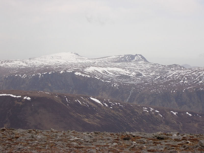 Looking up to Beinn a'Chaisteal (L) and Meall an Ghrianain (R) from Loch Vaich: