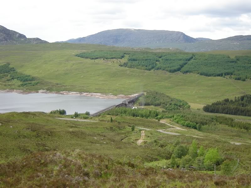 Loch Loyne dam from lower slopes of Meall Dubh: