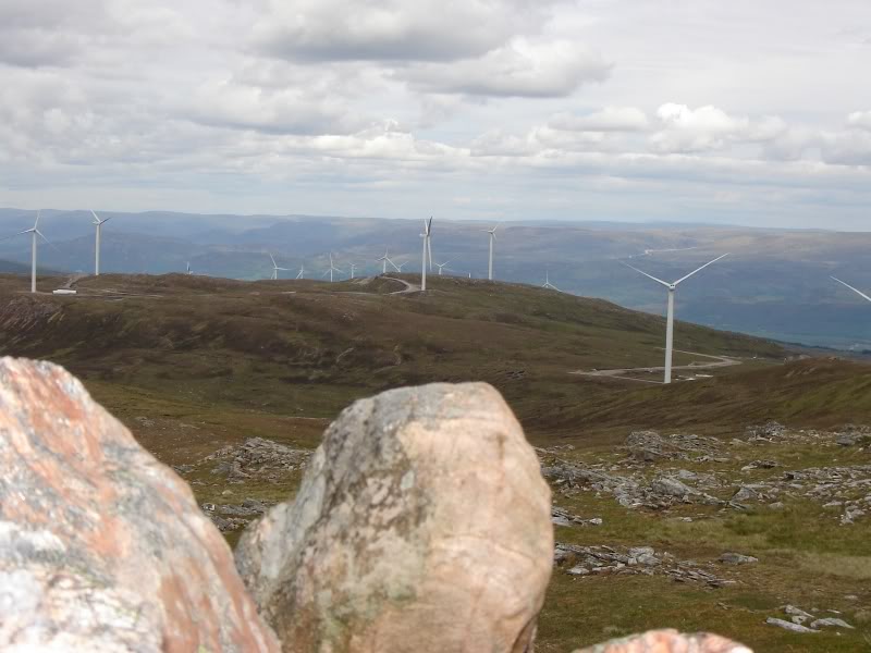 On reaching the top of this hill we were somewhat surprised in seeing a windfarm which was very close to the summit.