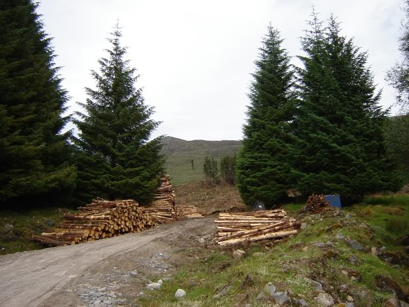 After a quick bite to eat, we descended directly towards the Beinneun forest, making for a clearing leading to a land-rover track where a number of trees had very recently been felled.